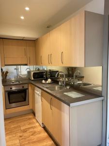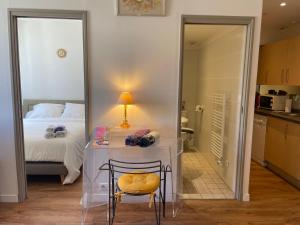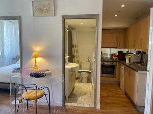 Ce logement une chambre dispose d’un salon au sol en parquet avec télévision écran plat ainsi qu’un espace détente ou travail. Le coin cuisine entièrement équipé comprend un four, une plaque de cuisson, un réfrigérateur, un grille-pain, une machine à café et tout le nécessaire pour préparer vos repas. La salle de bains offre le choix entre baignoire ou douche ainsi que du savon corporel et un sèche-cheveux.