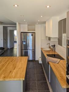 À l’intérieur de l’appartement, les hôtes disposent de quatre lits répartis dans les trois chambres plus un canapé-lit dans le séjour climatisé. Le logement comprend serviettes et linge de maison ainsi qu’une machine à laver, un système de chauffage, un coin salon, une télévision et une table à manger. La cuisine entièrement équipée comporte réfrigérateur, lave-vaisselle, four électrique, bouilloire électrique et tout le nécessaire pour cuisiner.