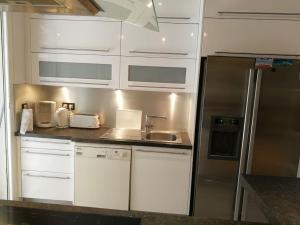 All’interno l’appartamento dispone di tre camere da letto con quattro letti in totale oltre a una TV schermo piatto per l’intrattenimento e aria condizionata regolabile singolarmente per un comfort personalizzato. La cucina completamente attrezzata include piano cottura, frigorifero, lavastoviglie, forno, microonde, tostapane e tutto il necessario per cucinare insieme ad angolo cottura per tè e caffè oltre al bollitore elettrico.