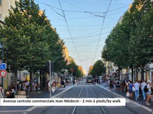 Apartmán BIG FLAT - LE CALA - City Center - 4 ložnice, pro 13 osob, blízko pláže, nádraží, parkování, WIFI, klimatizace | SKUPINY | OBCHODNÍ CESTY | RODINY se nachází v srdci Nice a nabízí prostorné ubytování s bezplatným WiFi připojením a klimatizací. Apartmán zahrnuje jednu velkou místnost se čtyřmi samostatnými ložnicemi a pohodlně pojme až třináct hostů. Objekt je vzdálen jen krátkou procházku od Plage du Centenaire a Avenue Jean Medecin.