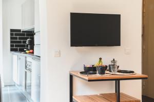 Le logement comprend une chambre avec un lit, un coin cuisine entièrement équipé avec plaque de cuisson, réfrigérateur, lave-vaisselle, four ainsi que des équipements pour préparer thé et café. La salle de bains dispose d’un sèche-cheveux , les serviettes sont fournies pour plus de confort. Parmi les autres équipements figurent le chauffage, un fer à repasser, le linge de lit, un lave-linge et une télévision écran plat.