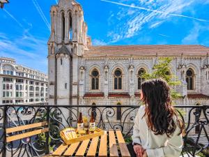 Situated just a stone's throw from Notre-Dame Basilica and only a 10-minute walk from Place Massena, the hotel is also positioned beside Jean-Médecin. Guests can reach Nice-Ville Train Station within five minutes on foot and enjoy a pleasant 15-minute stroll to both the Promenade des Anglais and the beach. Paid public parking is available just 100 metres away with discounted rates for guests.