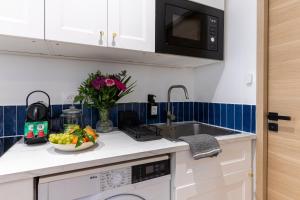 El apartamento cuenta con una cocina americana totalmente equipada con placa eléctrica, frigorífico, lavavajillas, microondas, tostadora, cafetera y hervidor eléctrico, además del menaje necesario y una mesa para comer. En el salón encontrará suelos de madera dura, calefacción, aire acondicionado y zonas para sentarse con sofá cama incluido. Otras comodidades incluyen ropa de cama, toallas, plancha y lavadora.