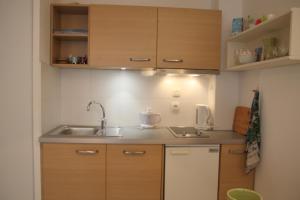 The accommodation offers one bedroom with non-feather pillows, heating, and an ironing board with iron. The fully equipped kitchenette features a refrigerator, stovetop, oven, microwave, coffee machine, electric kettle, toaster as well as kitchenware and dining table for meals indoors. Additional in-room amenities include a seating area with sofa, work desk, wardrobe closet, clothes drying rack and tiled flooring.