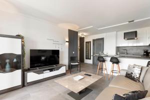 The air-conditioned apartment comprises a living room plus two separate bedrooms with four beds in total, alongside a private bathroom featuring a shower and hairdryer. Guests can prepare meals in the fully equipped kitchen that includes an oven, stovetop, refrigerator, dishwasher, microwave as well as tea and coffee making facilities. Additional room amenities consist of heating, bed linen and towels provided, ironing facilities including iron and ironing board, wardrobe or closet space, seating area for relaxation or work purposes, washing machine access, air conditioning, baby cot availability, and television.