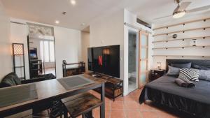 В апартаментах одна спальня с одной кроватью и ванная комната с душевой кабиной и феном. Гости могут воспользоваться полностью оборудованной мини-кухней с духовкой, микроволновой печью, плитой, холодильником, электрическим чайником, кофемашиной, кухонной посудой и обеденным столом для комфортного приготовления пищи. Дополнительные удобства включают гладильные принадлежности (утюг и гладильную доску), синтетические подушки без пера, систему отопления, сушилку для одежды, рабочий стол и шкаф рядом с диваном.