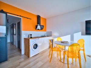 Das klimatisierte Apartment verfügt über zwei Betten - darunter ein Schlafsofa - sowie eine zusätzliche Klappmatratze, der Boden ist gefliest und eine Heizung sorgt für angenehme Temperaturen. Die voll ausgestattete Küche beinhaltet ein Kochfeld, Kühlschrank, Geschirrspüler, Backofen, Mikrowelle sowie eine Kaffeemaschine und Tee- bzw. Kaffeezubereitungsmöglichkeiten. Waschmaschine und Trockner stehen ebenfalls zur Verfügung, Handtücher sind inklusive.