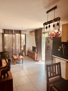 El alojamiento dispone de tres camas repartidas en dos dormitorios y un ambiente climatizado para garantizar confort durante toda su estancia. La cocina americana está completamente equipada con utensilios, frigorífico, cafetera y lavadora para cubrir todas las necesidades culinarias y lavandería. Los huéspedes pueden disfrutar del entretenimiento gracias al televisor pantalla plana con servicios en streaming así como canales televisivos.