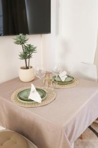 El alojamiento dispone de una cocina americana bien equipada con horno, microondas, placa eléctrica, frigorífico, utensilios y cafetera junto con facilidades para preparar té y café. La unidad climatizada incluye tres camas —una cama sofá en el área del salón— además de vestidor y escritorio para mayor comodidad.