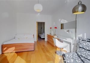 Este apartamento de un dormitorio dispone de dos camas y una cocina americana equipada con horno, placa vitrocerámica, nevera, microondas y utensilios. Los huéspedes pueden disfrutar de facilidades para preparar té y café, además de servicios para planchar que incluyen plancha y tabla. El baño está equipado con secador de pelo.