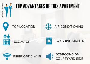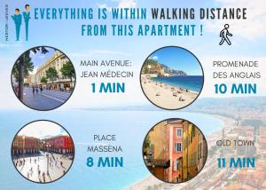 L’appartement bénéficie également d’un emplacement idéal à proximité du MAMAC, accessible en 1,3 km. Parmi les autres sites remarquables aux alentours figurent la Cathédrale orthodoxe russe, la gare de Nice-Ville ainsi que la colline du Château. Pour les voyageurs arrivant par avion, l’aéroport Nice Côte d’Azur est situé à 6 km avec un service de navette aéroport payant disponible.