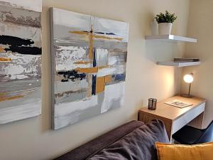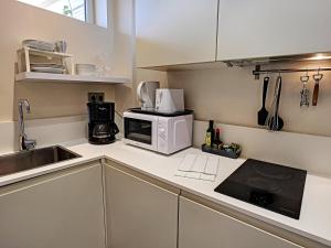 L’hébergement comprend un lit dans un studio climatisé équipé d’un coin cuisine complet avec réfrigérateur, micro-ondes, grille-pain, cafetière, bouilloire électrique ainsi que des équipements pour préparer thé et café. Les clients disposent aussi de matériel de repassage comprenant fer et planche à repasser, linge de lit, serviettes, chauffage, machine à laver ainsi que d’une salle de bains privée équipée soit d’une baignoire soit d’une douche avec sèche-cheveux.