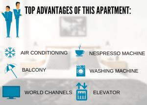 Das Gebäude verfügt über einen Aufzug zu den oberen Etagen des Apartments sowie Concierge-Service für Gästebetreuung. Kostenfreies WLAN ist im gesamten Objekt verfügbar, eine private Tiefgarage steht vor Ort zur Verfügung. Rauchmelder sorgen für erhöhte Sicherheitsstandards.