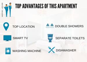 Accommodation features include two bedrooms along with a seating area and one bathroom equipped with a shower and hairdryer. The fully equipped kitchen boasts modern appliances such as an oven, stovetop, dishwasher, microwave, refrigerator, toaster, coffee machine, electric kettle as well as tea and coffee making facilities, dining can be enjoyed at the provided dining table. Additional room amenities consist of heating, iron with ironing board, washing machine with clothes drying rack plus sofa seating.