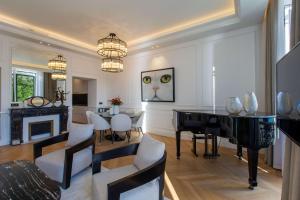 Просторные апартаменты включают гостиную, три отдельные спальни и четыре санузла с душевыми кабинами и бесплатными туалетными принадлежностями. Для комфортного пребывания гостей предусмотрены кондиционер, камин, зона отдыха с кабельным телевидением, а также прачечная с стиральной машиной и гладильными принадлежностями. Полностью оборудованная кухня оснащена духовкой, плитой, посудомоечной машиной, холодильником, микроволновкой, кофемашиной и всем необходимым кухонным инвентарём для удобства приёма пищи.