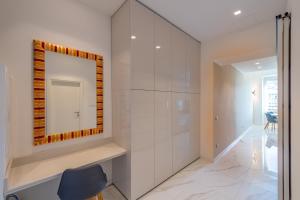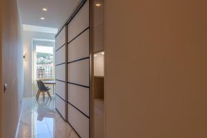L’appartamento dispone di una camera da letto separata e un soggiorno climatizzato con pareti insonorizzate. Gli ospiti possono usufruire di due letti e di una TV a schermo piatto con servizi in streaming. L’angolo cottura completamente attrezzato include elettrodomestici moderni quali lavastoviglie, forno, piano cottura, microonde, frigorifero, macchina per il caffè e bollitore elettrico. Sono inoltre disponibili lavatrice e asciugatrice all’interno dell’unità.