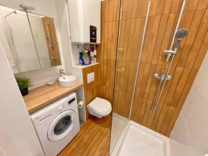 El apartamento incluye una cama junto con un sofá cama para mayor flexibilidad. Los huéspedes pueden preparar sus comidas en la cocina americana totalmente equipada que cuenta con placa eléctrica, microondas, frigorífico y facilidades para preparar té y café. Entre las comodidades adicionales se encuentran calefacción, plancha, toallas y ropa de cama proporcionadas para su conveniencia, además de lavadora y escritorio.