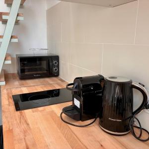 The studio accommodates guests with one bed and includes a fully equipped kitchen featuring a stovetop, refrigerator, microwave, tea and coffee making facilities along with essential kitchenware. Air conditioning ensures comfort while indoors complemented by seating area amenities such as bed linen and towels. The bathroom is fitted with a shower and hairdryer for convenience.