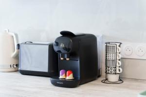 La sistemazione comprende una camera da letto con un letto singolo, un soggiorno climatizzato e un bagno privato completo di doccia walk-in e asciugacapelli. L’angolo cottura completamente attrezzato include piano cottura, frigorifero, microonde, tostapane, macchina per il caffè, bollitore elettrico, utensili da cucina e tavolo da pranzo per preparare i pasti con comodità.