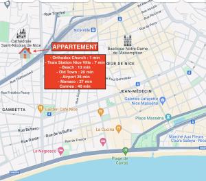 Die Unterkunft befindet sich weniger als 1 km vom Bahnhof Nice-Ville, 1,1 km von der Avenue Jean Médecin und 1,2 km vom Forum-Strand entfernt. Das MAMAC ist 3,6 km entfernt, das Kloster Cimiez liegt in einer Entfernung von 4,4 km. Die Burgberg-Anlage von Nizza erreichen Sie nach 5,7 km, das Allianz Riviera Stadion befindet sich in einer Entfernung von 10 km.