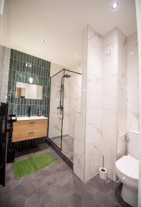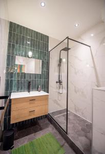 Vous pourrez préparer vos repas dans le coin cuisine complet disposant d’un four, micro-ondes, plaques de cuisson, réfrigérateur, machine à café et bouilloire électrique ainsi que l’ensemble des ustensiles nécessaires et une table pour dîner. Pour votre confort audiovisuel : télévision écran plat avec prise au chevet du lit. La connexion WiFi est disponible dans tout l’appartement.