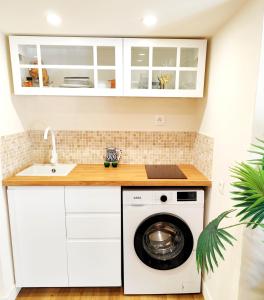 Le logement dispose de la climatisation, du chauffage, de deux couchages comprenant un canapé-lit et un lit d’appoint possibles ainsi que d’un parquet en bois dur et d’oreillers synthétiques non duvetés pour plus de confort. Le coin cuisine est entièrement équipé avec plaque de cuisson, réfrigérateur, micro-ondes, machine à café ainsi que des installations pour préparer thé et café accompagnées d’un espace salle à manger. Les hôtes bénéficient également d’un fer à repasser, lave-linge, armoire/penderie et couverture électrique.