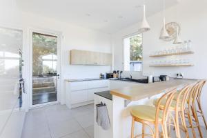 Les hôtes bénéficient d’un coin cuisine entièrement équipé avec machine à café, four, micro-ondes, barbecue grillé, grille-pain, lave-vaisselle et réfrigérateur. La villa propose également des équipements extérieurs dont une terrasse meublée permettant d’admirer la vue sur la mer. Parmi les autres commodités figurent le Wi-Fi gratuit dans toute la propriété ainsi qu’un parking sécurisé disponible dans son garage.