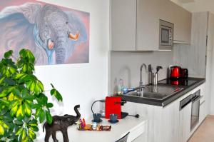 Each apartment includes bedroom areas with flat-screen TVs as well as fully equipped kitchens featuring microwaves, ovens, stovetops, dishwashers, coffee machines, electric kettles and kitchenware for dining convenience. Additional room amenities encompass individually controlled air conditioning, heating, safes suitable for laptops or valuables, ironing facilities including iron and board, work desks, wardrobes or closets alongside sofas or sofa beds. Bathrooms come complete with showers or bathtubs plus complimentary toiletries such as shampoo and body soap.