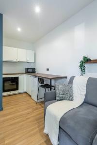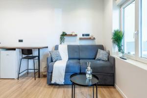 Each studio offers a well-appointed kitchen complete with a stovetop, oven, microwave and refrigerator allowing guests to prepare meals conveniently. The living area features a sofa bed alongside wardrobe space and bedside sockets for charging devices. Additional room amenities include individually controlled air conditioning units, heating systems, clothes drying racks and washing machines for guest comfort.